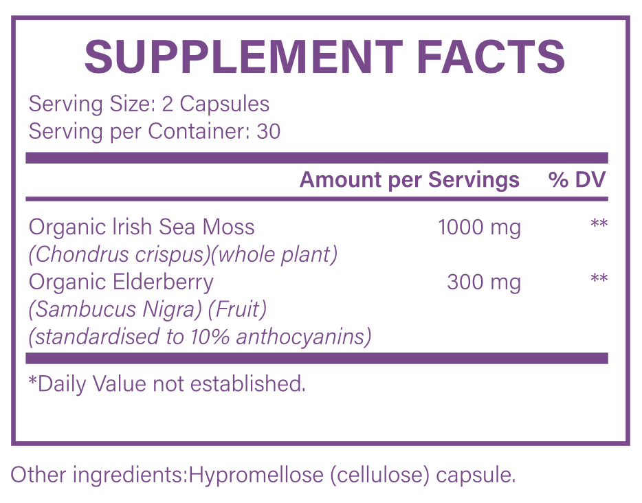 Organic Sea Moss + Elderberry is a traditional wellness blend designed to support the body’s natural defenses and overall vitality. Sea Moss provides a rich spectrum of essential minerals, while Elderberry is renowned for its immune-supporting and antioxidant properties.